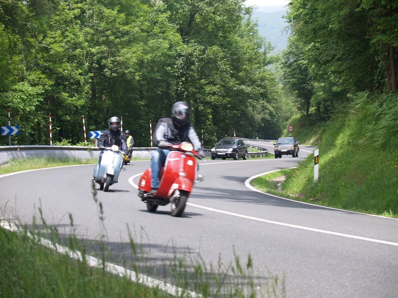 Ansioso de rodar otra vez el Vespa Club Vitoria Vintage, llegan puntuales a la nueva cita de junio los vespistas y lambrettistas con José en su Lambretta con sidecar, Vicente, Txetxu y Alfonso en sus Vespas GT160, Julius y Tito (que solo vino a saludar) en sus Vespas 160, Javi en su Lambretta TV175, Julio del Vespa Club Bilbao en su Vespa 125L que se animo desde Getxo, trayendole en furgoneta un amigo suyo, y Dani de Miranda de Ebro su Vespa Sprint 150.