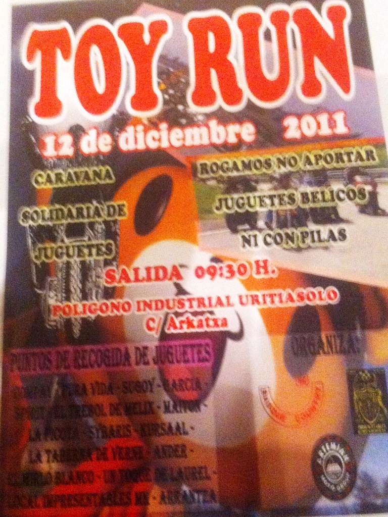 El día 12 de Diciembre una caravana compuesta por todos los moteros que así lo deseen con sus motos engalanadas con juguetes (algunos con sus disfraces de papa noel o olentzero como ya suele ser habitual en otras ediciones).