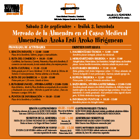 El Vespa Club Vitoria es invitado por GasteizOn dentro de las actividades del Mercado de la Almendra en el Casco Medieval de Vitoria-Gasteiz  que se celebra el próximo sábado 3 de septiembre.