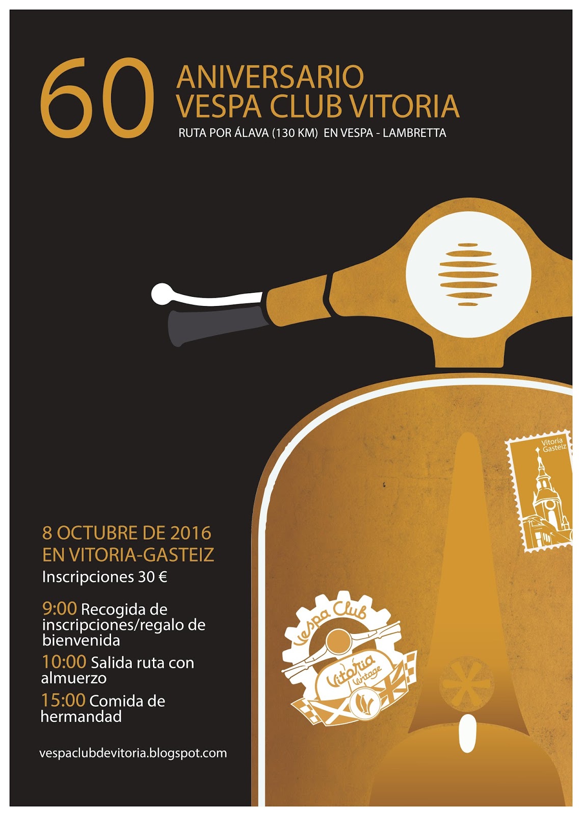 Vamos a promocionar nuestro evento por el 60º aniversario del Vespa Club Vitoria que se celebra el 8 de octubre con una Ruta por Álava en Vespa o Lambretta.